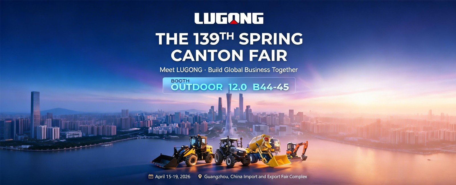 Shandong LUGONG Machinery will participate in the 139th China Import and Export Fair (Canton Fair), taking place in Guangzhou from April 15 to April 19, 2026. As a professional wheel loader manufacturer in China, LUGONG will present its latest solutions for construction, agriculture, and material handling industries.